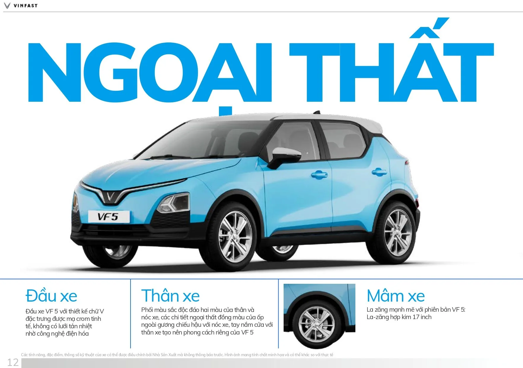 Xe ô tô điện VinFast VF5 thuộc phân khúc SUV, tương tự như Toyota Raize & Kia Sonet được bán ở thị trường Việt Nam nhưng có nhiều điểm khác biệt về thiết kế. Những đường nét được tạo nên bởi nhà thiết kế Pininfarina, Zagato, Torino Design, Italdesign, hình ảnh VF5 mang dáng dấp mẫu xe ô tô điện của tương lai.