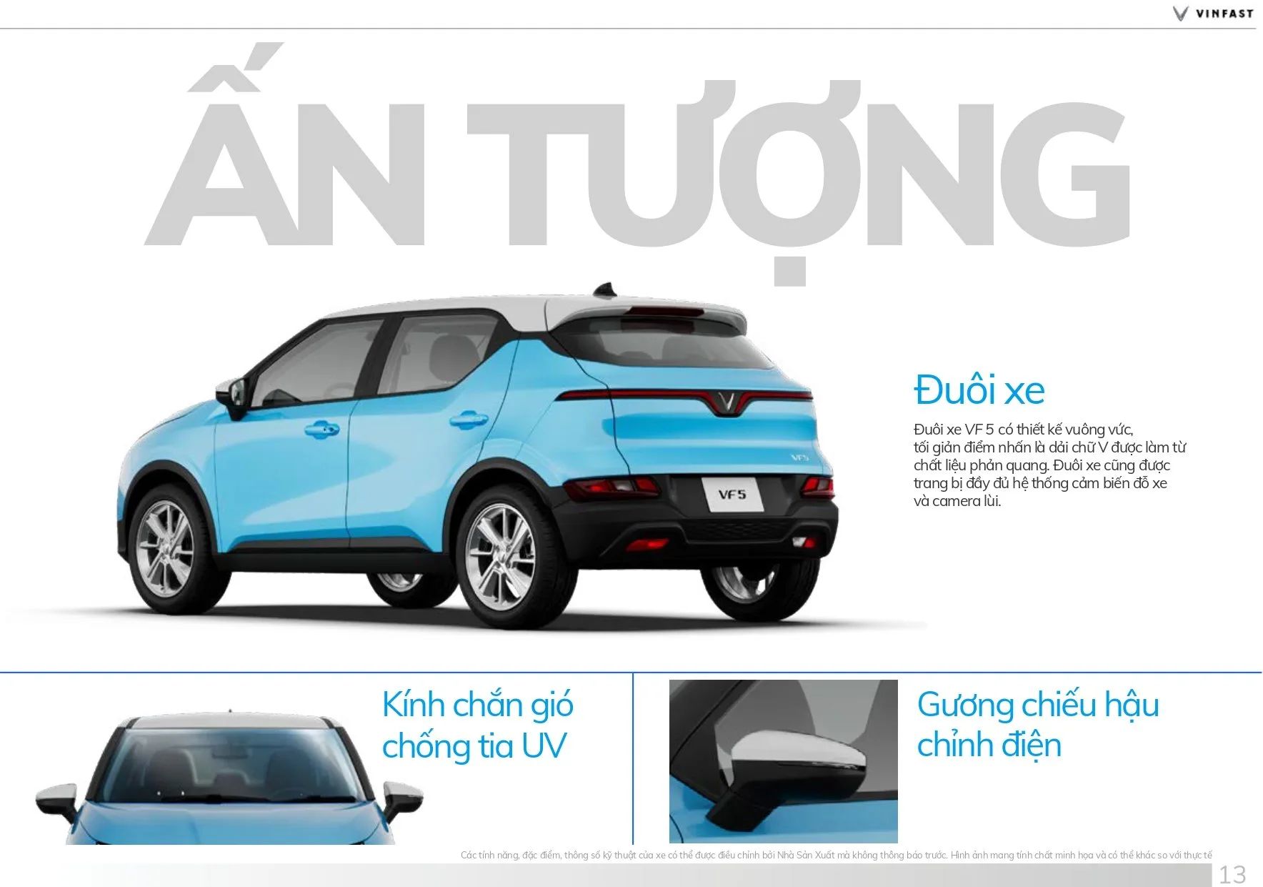 Cụm đèn xi-nhan, đèn lùi và đèn sau màu đỏ đặt thấp xuống dưới. Cánh gió, ăng-ten vây cá cùng màu nóc xe. Cản sau thiết kế khá hầm hố với màu đen bóng, càng nhấn mạnh vẻ khỏe khoắn trên VF5