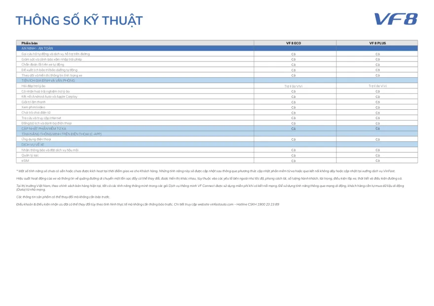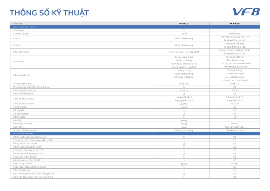 | Vinfast VF8 Eco +Pin: | 1.069.000.000 ₫ đ |